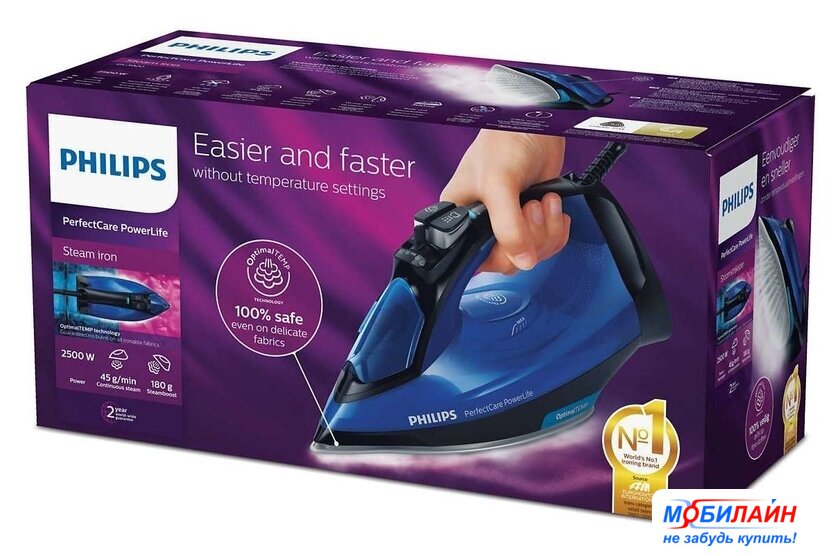 2800 Вт, с пароувлажнением, подошва SteamGlide Plus, постоянная подача пара