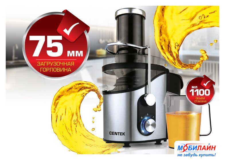 1500 Вт, центробежная, отверстие для загрузки: 85 мм, ёмкость для сока