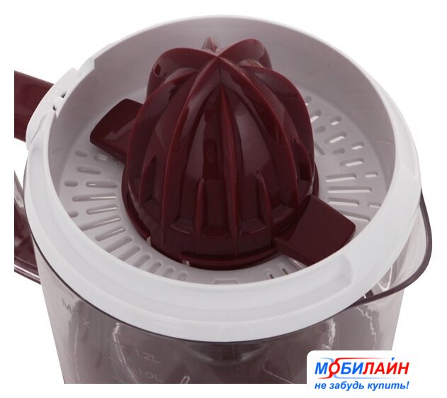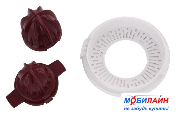 Комплектация | КрышкаКонус для апельсиновКонус для лимоновФильтрЕмкость для сбора сокаРычаг для регулировки мякоти в соке |