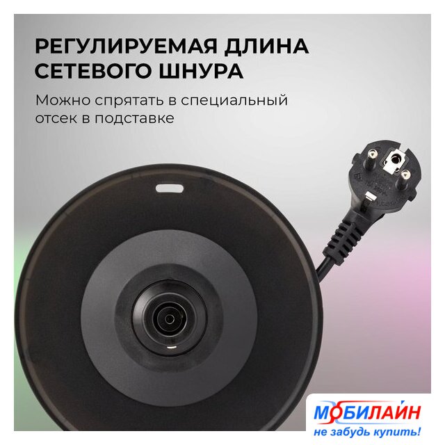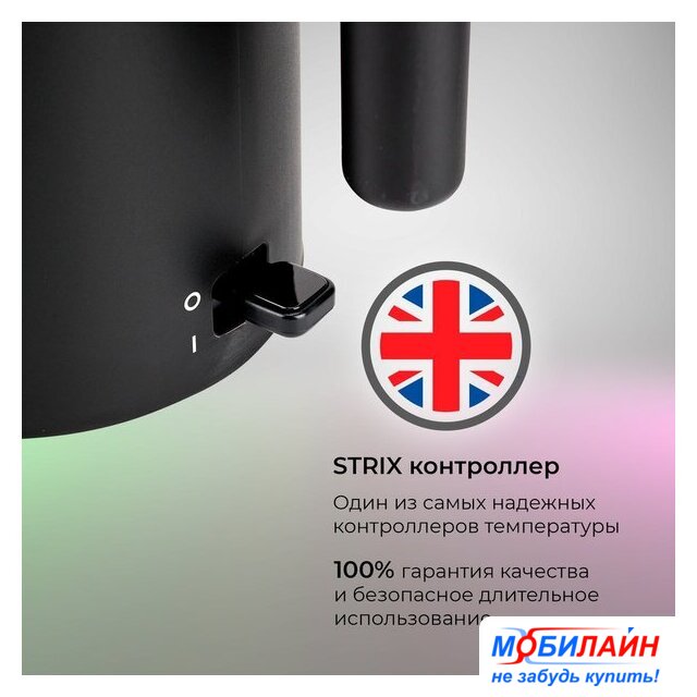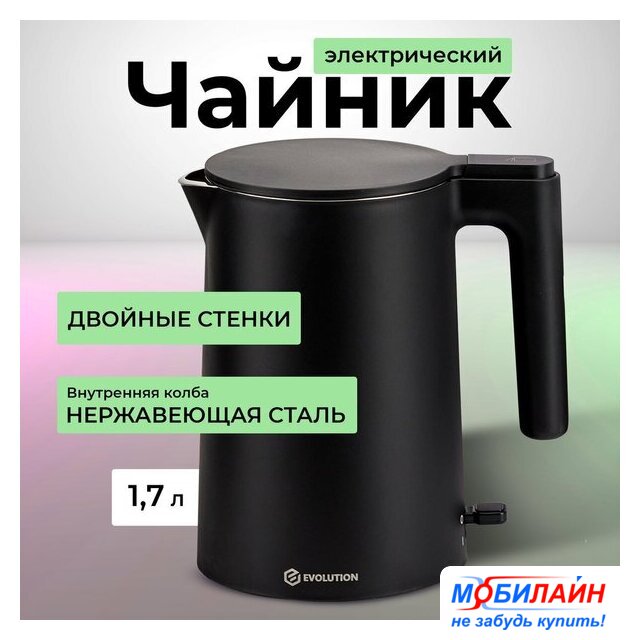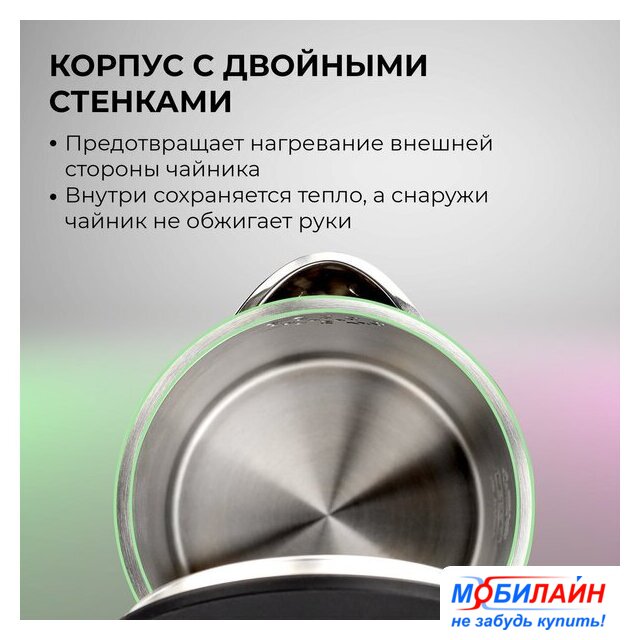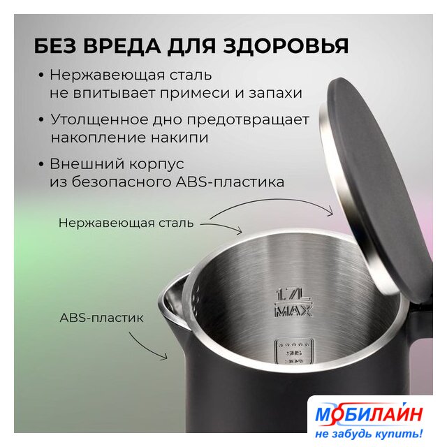 2200 Вт, объем 1.7 л, подсветка, цвет нержавеющая сталь/черный