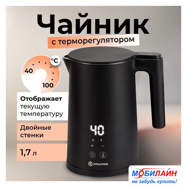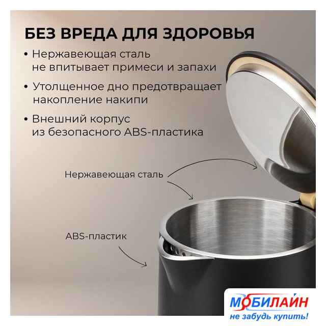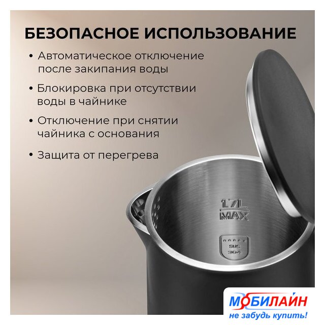 2200 Вт, объем 2 л, терморегулятор, подсветка, цвет черный