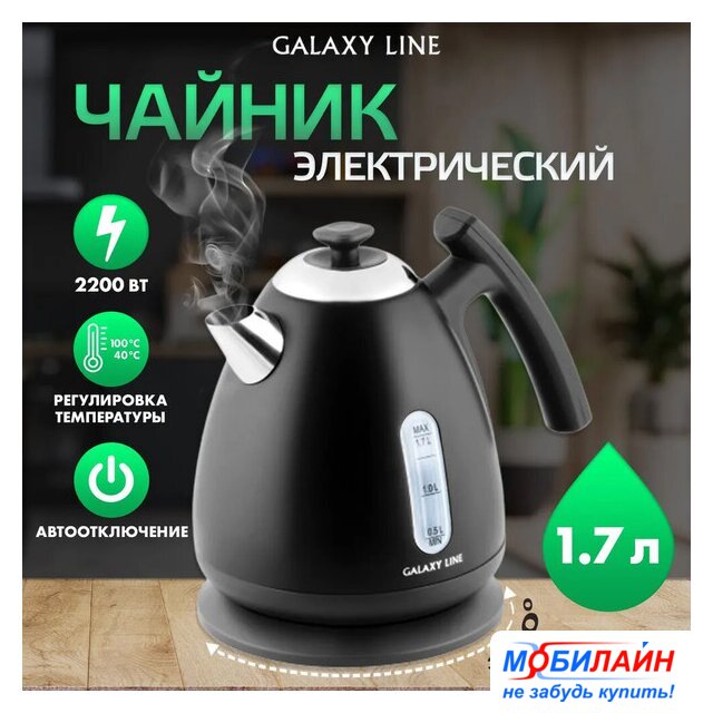 2200 Вт, объем 1.7 л, терморегулятор, цвет черный