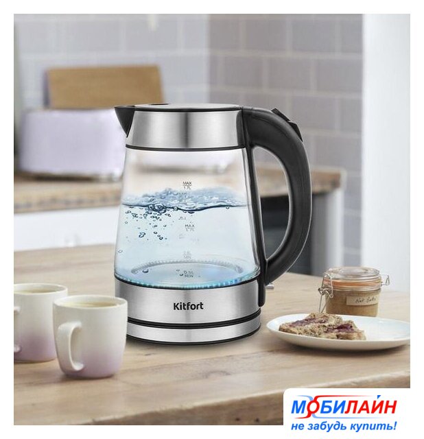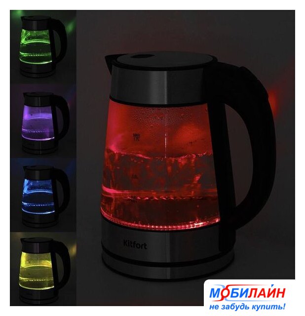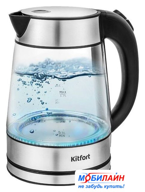 2200 Вт, объем 1.7 л, терморегулятор, подсветка, цвет серебристый/черный