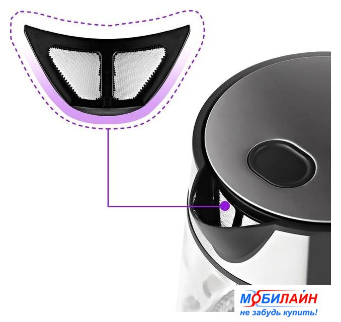 2200 Вт, объем 1.8 л, подсветка, цвет прозрачный/фиолетовый