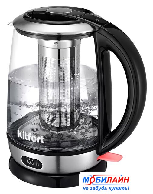 2200 Вт, объем 1.7 л, терморегулятор, подсветка, цвет нержавеющая сталь/черный