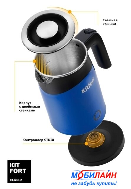 2200 Вт, объем 1.7 л, терморегулятор, подсветка, цвет фиолетовый