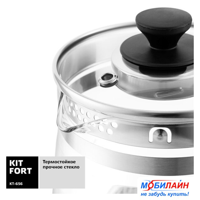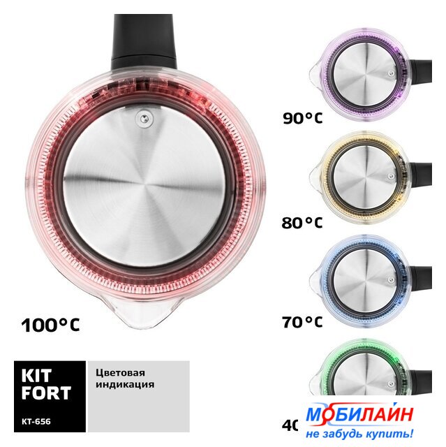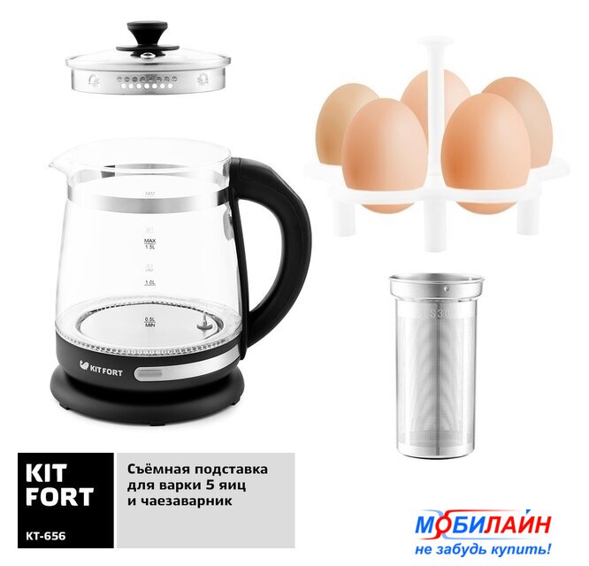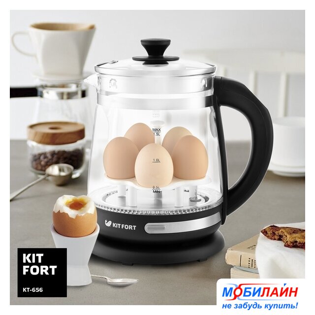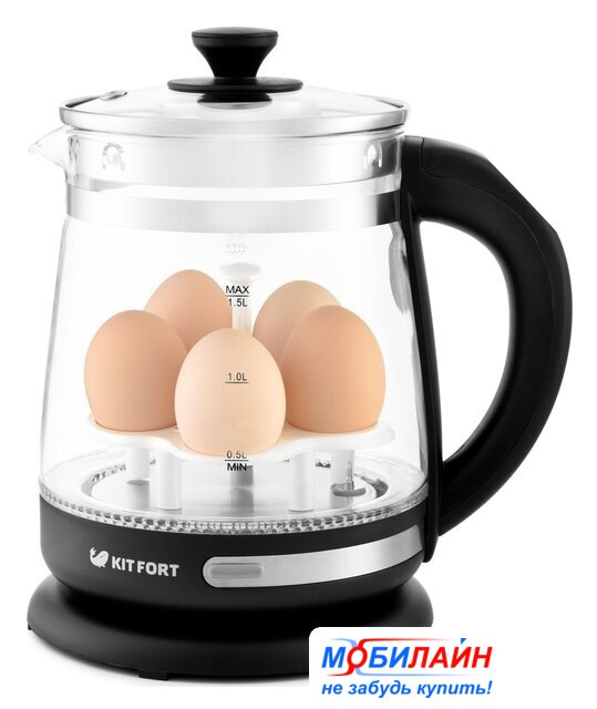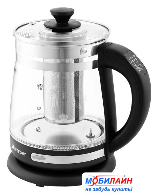 2200 Вт, объем 2 л, терморегулятор, подсветка, цвет прозрачный/черный