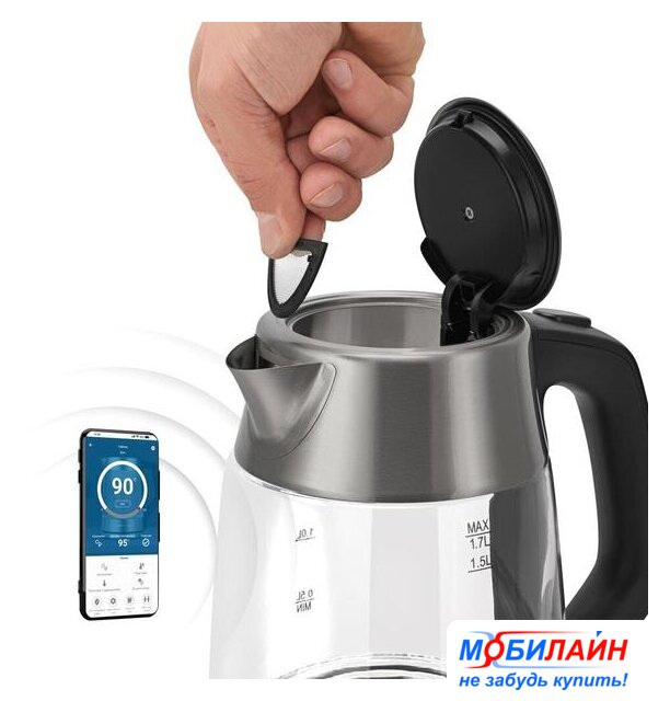 2200 Вт, объем 1.7 л, подсветка, цвет нержавеющая сталь/черный