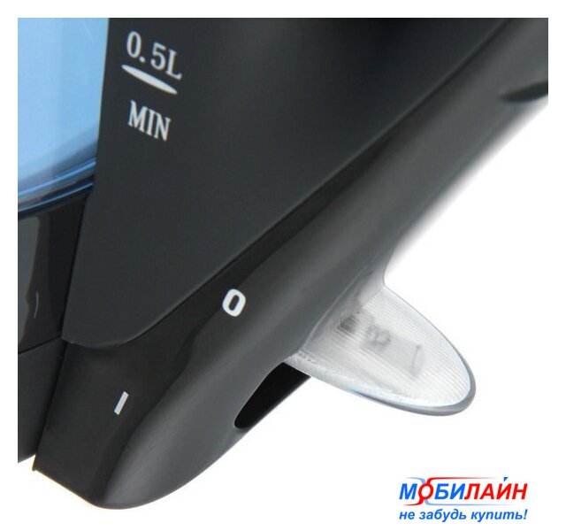 электрочайник, 2200 Вт, объем 1.7 л, подсветка, цвет голубой/черный