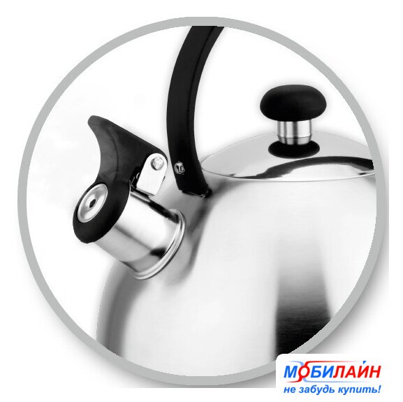 2.5 л, нержавеющая сталь, полированная нержавеющая сталь, ручка бакелитовая, свисток с рычажком