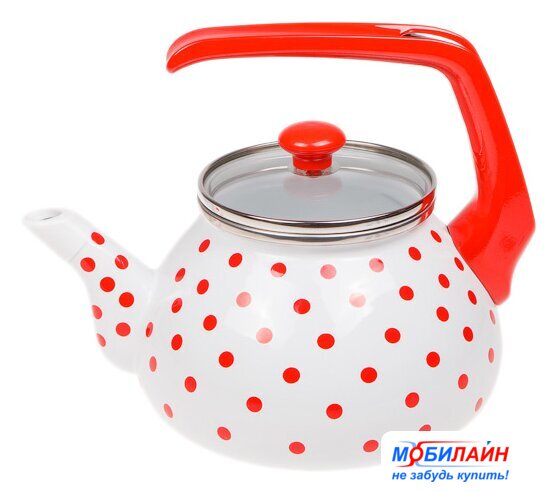 2.2 л, эмалированная сталь, белый/красный, ручка бакелитовая