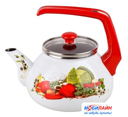 2.2 л, эмалированная сталь, белый/красный, ручка бакелитовая