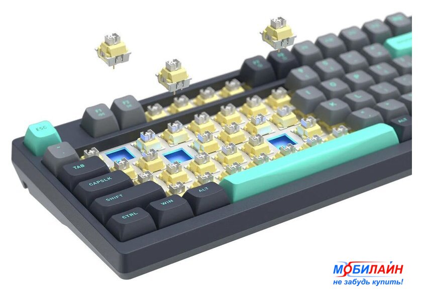 переключатели A4Tech FS Yellow, ход линейный/тихие, белый/бирюзовый