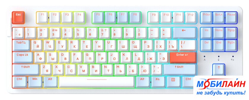 игровая для ПК/для компьютеров Apple/для iPad/для устройств Android, механическая, Gateron G Pro Blue, ход тактильный/с кликом, пластик с металлической рамкой, интерфейс подключения - USB/Bluetooth, подсветка, цвет белый/черный