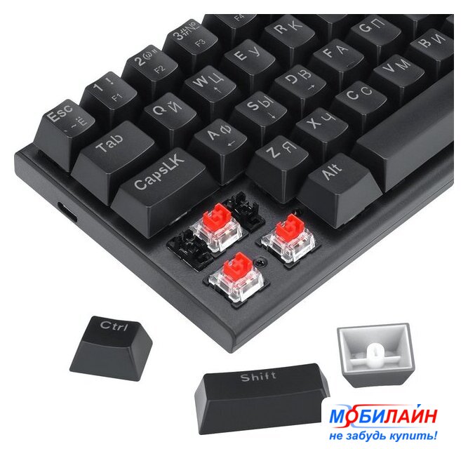 игровая для ПК, механическая, Redragon Ice, ход линейный, пластик, интерфейс подключения - USB-A, кириллица: да, цвет черный/прозрачный