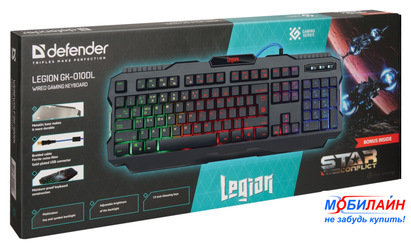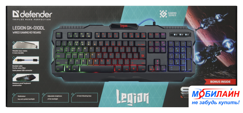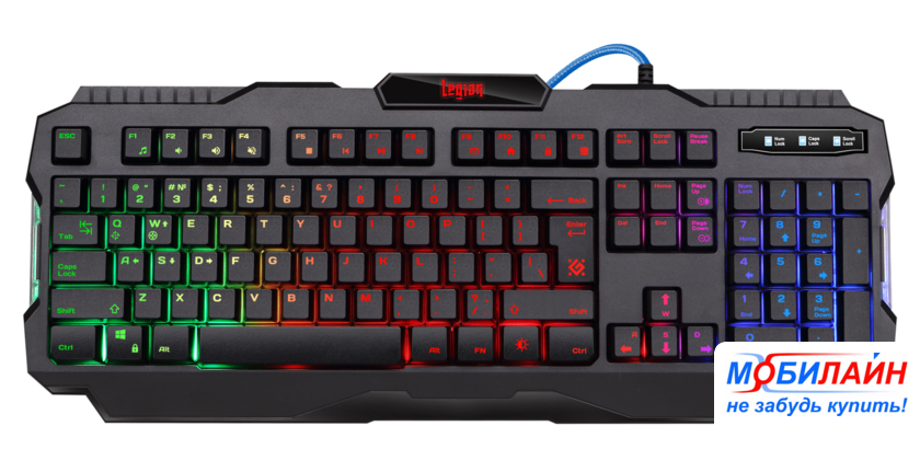 игровая для ПК, мембранная, пластик, интерфейс подключения - USB, подсветка, цвет черный
