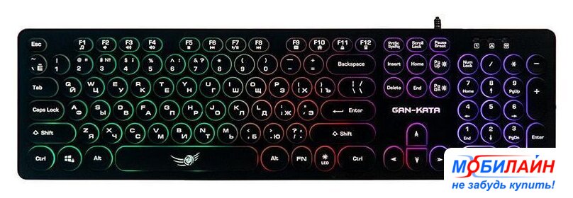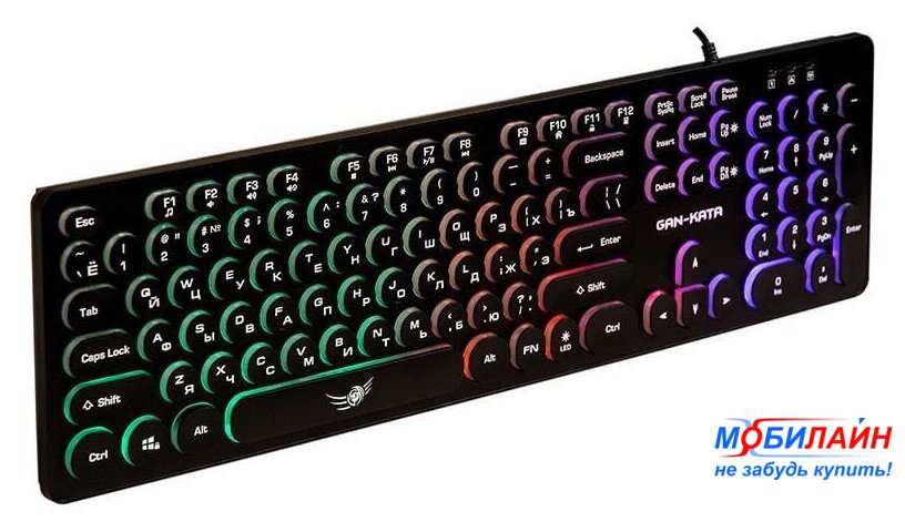 игровая для ПК, мембранная, пластик, интерфейс подключения - USB, подсветка, цвет черный