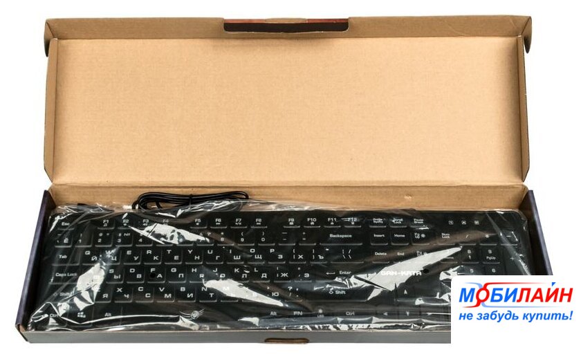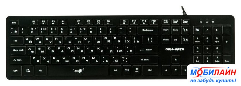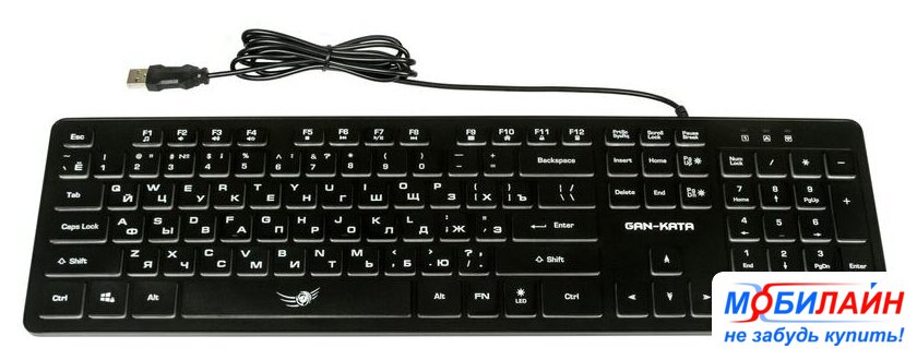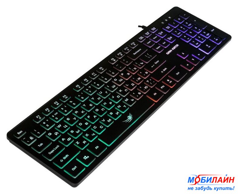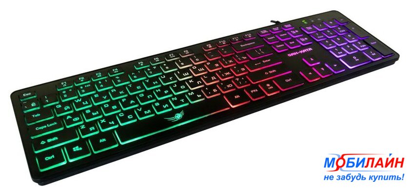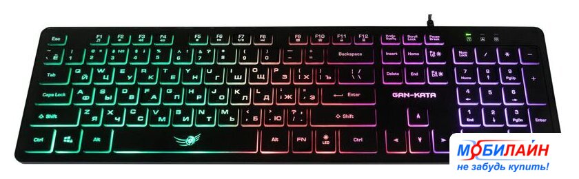 игровая для ПК, мембранная, пластик, интерфейс подключения - USB, подсветка, цвет черный
