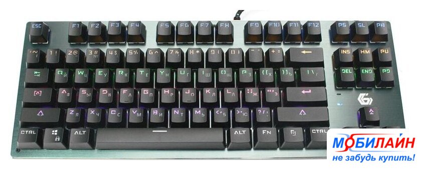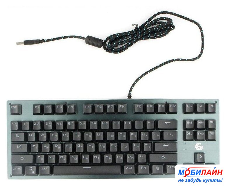 игровая механическая для ПК, Outemu Blue, интерфейс подключения - USB, подсветка, влагозащита, цвет черный|металлическая верхняя панель