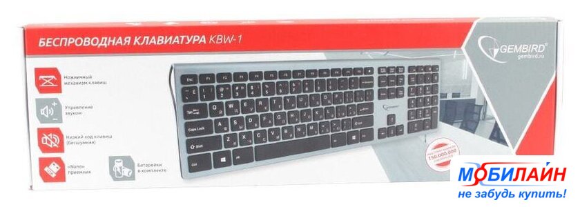стандартная для ПК, мембранная, пластик, интерфейс подключения - радио, цвет серебристый