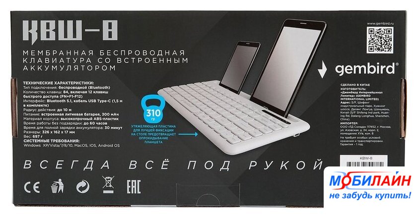 Интерфейс подключения клавиатуры | USB-A, радио, Bluetooth |
