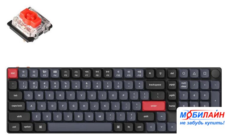 игровая для ПК/для компьютеров Apple/для iPad/для устройств Android, механическая, Gateron Low Profile Red, ход линейный/низкопрофильный, пластик с металлической рамкой, интерфейс подключения - USB-A/Bluetooth, цвет черный/серый
