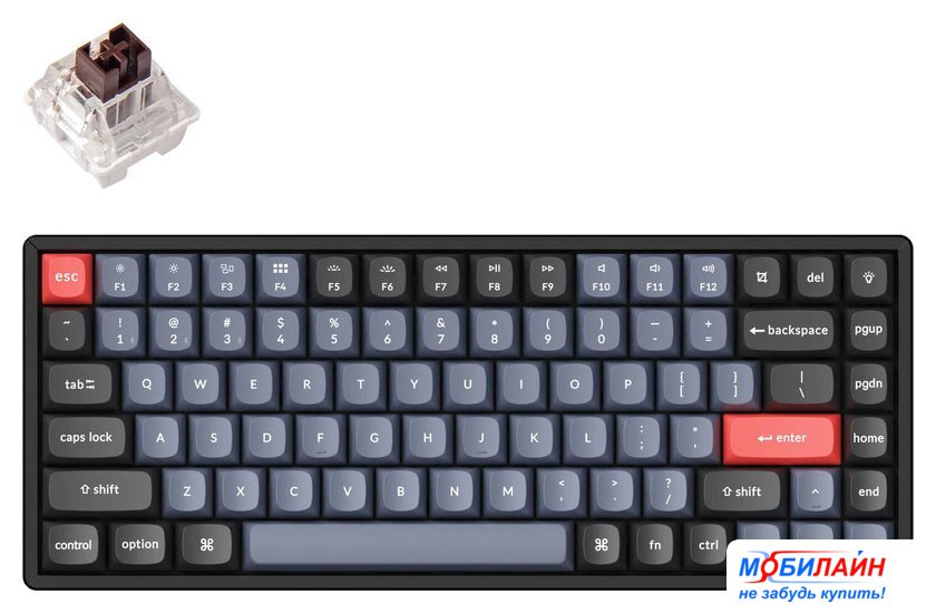 игровая для ПК/для компьютеров Apple/для iPad/для устройств Android, механическая, Gateron Low Profile Brown, ход тактильный/низкопрофильный, пластик с металлической рамкой, интерфейс подключения - USB-A/Bluetooth, кириллица: да, цвет черный/серый
