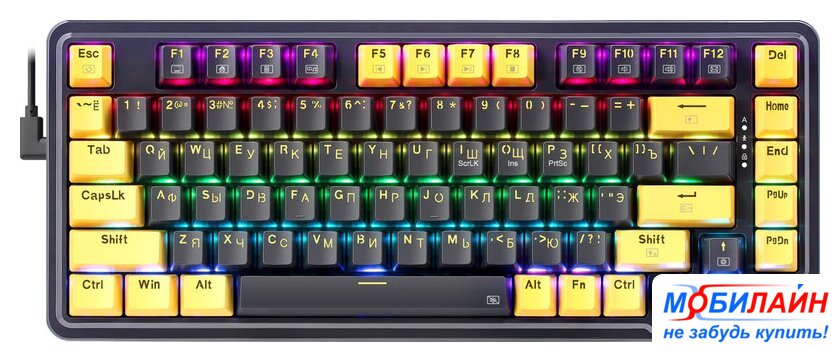 игровая для ПК/для компьютеров Apple, механическая, Outemu Brown, ход тактильный/тихие, пластик, интерфейс подключения - USB-A/радио/Bluetooth, подсветка, кириллица: да, цвет белый/темно-синий
