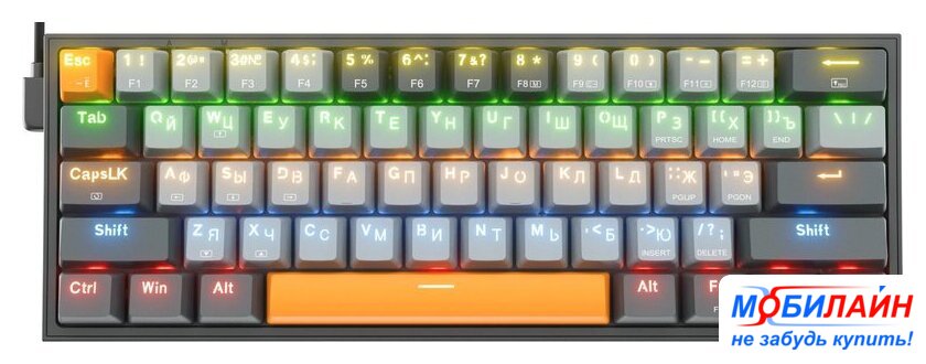 игровая для ПК, механическая, Outemu Blue, ход с кликом, пластик, интерфейс подключения - USB-A, подсветка, цвет черный