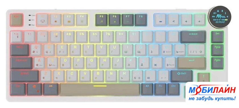 игровая для ПК/для компьютеров Apple/для iPad/для устройств Android, механическая, RK Red, ход линейный/без клика, пластик, интерфейс подключения - USB/Bluetooth, подсветка, цвет белый