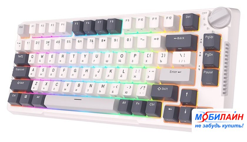 игровая для ПК, механическая, RK Brown, ход тактильный/с кликом, пластик, интерфейс подключения - USB-A, цвет белый/темно-синий/фиолетовый