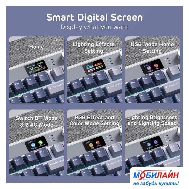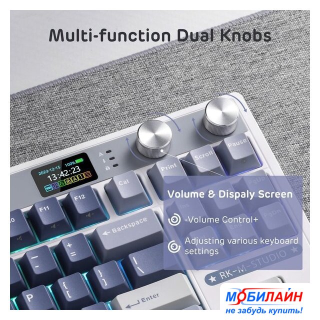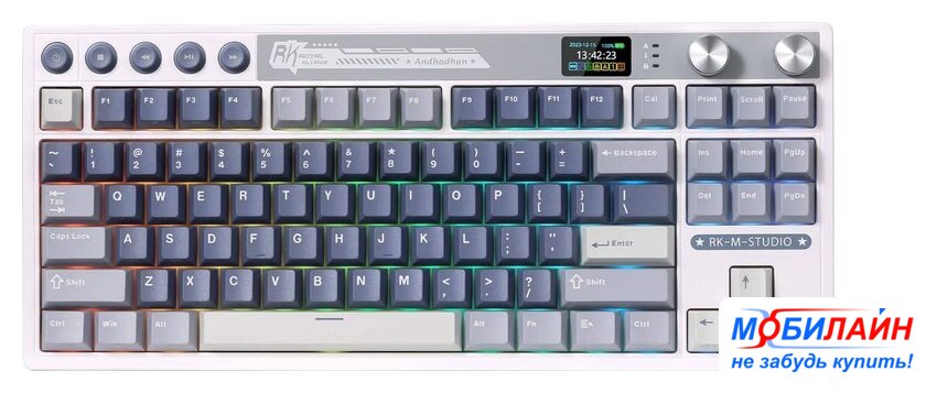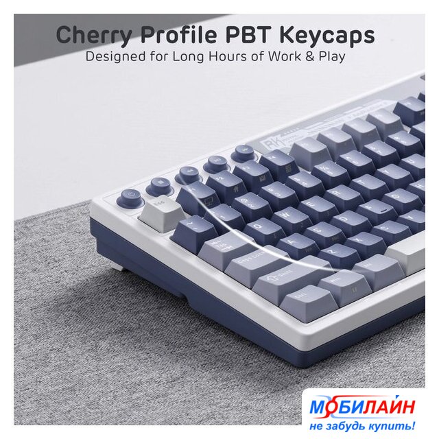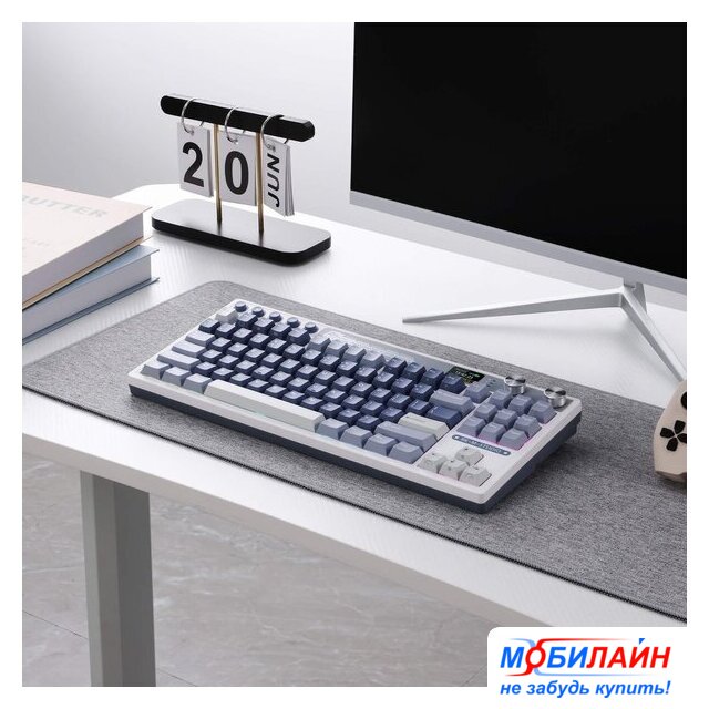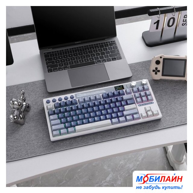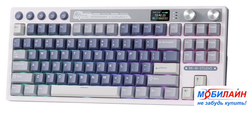 игровая для ПК/для компьютеров Apple/для iPad/для устройств Android, механическая, RK Red, ход линейный, пластик, интерфейс подключения - USB-A/радио/Bluetooth, подсветка, USB-хаб, цвет белый/синий
