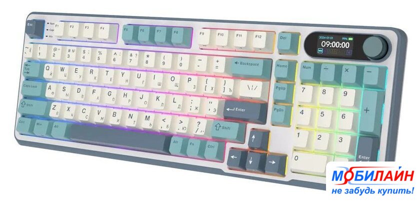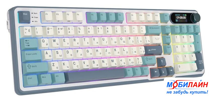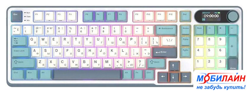 игровая для ПК, механическая, Outemu Blue, ход с кликом, пластик, интерфейс подключения - USB/радио/Bluetooth, подсветка, цвет черный