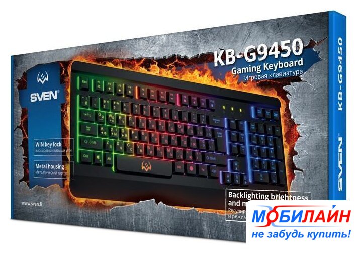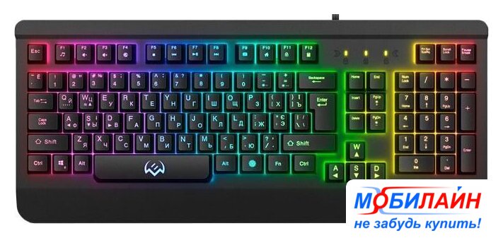 игровая для ПК, мембранная, пластик, интерфейс подключения - USB-A, подсветка, цвет черный
