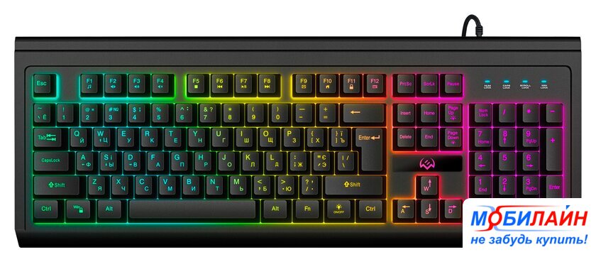 игровая для ПК, мембранная, пластик, интерфейс подключения - USB, подсветка, цвет черный