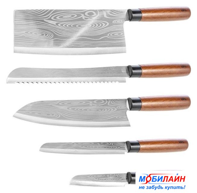 набор ножей (5 шт), универсальный/поварской/для очистки овощей/для нарезки/разделочный, материал: нержавеющая сталь/дерево, лезвие 8.9-20.3 см, в комплекте кухонные ножницы, подставка