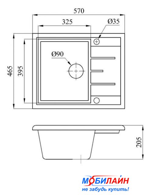 врезная на столешницу, искусственный камень, размеры: 32.5x39.5 см, глубина чаши: 20 см