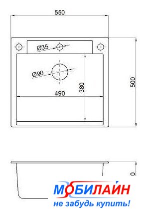 врезная на столешницу, искусственный камень, размеры: 32.5x39.5 см, глубина чаши: 20 см