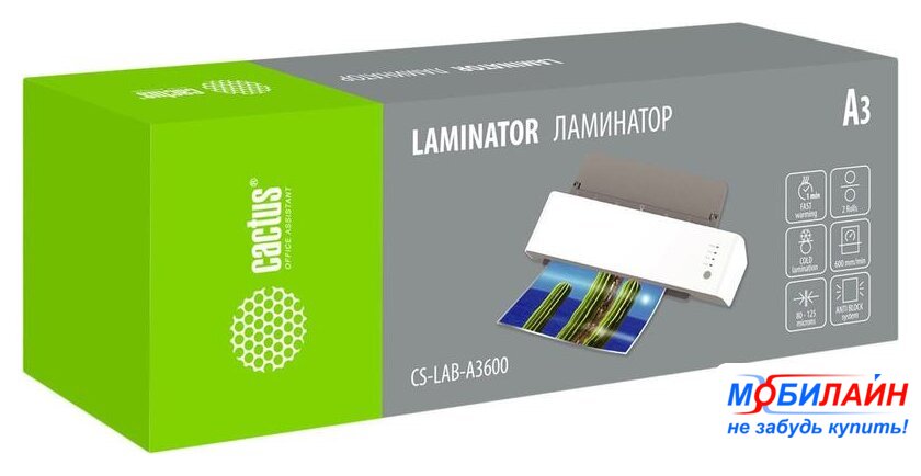 пакетный, A4, нагревательный элемент: валы, скорость: 32 см/мин, время нагрева: 2 мин, 80×410×160 мм, 1.3 кг