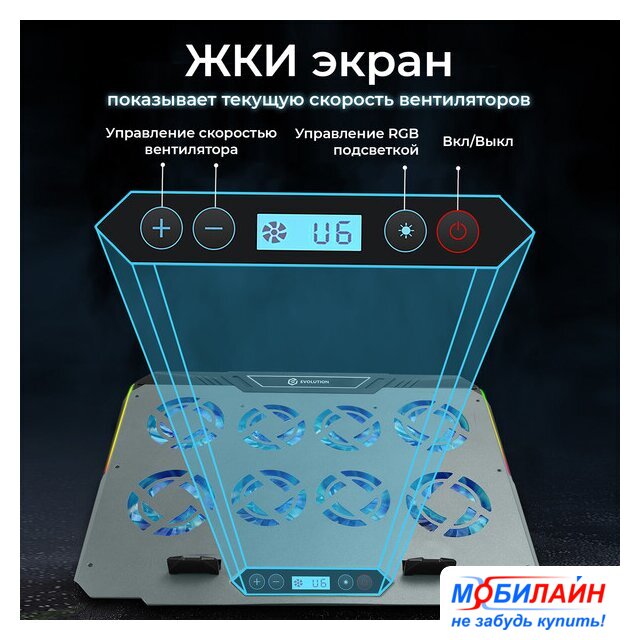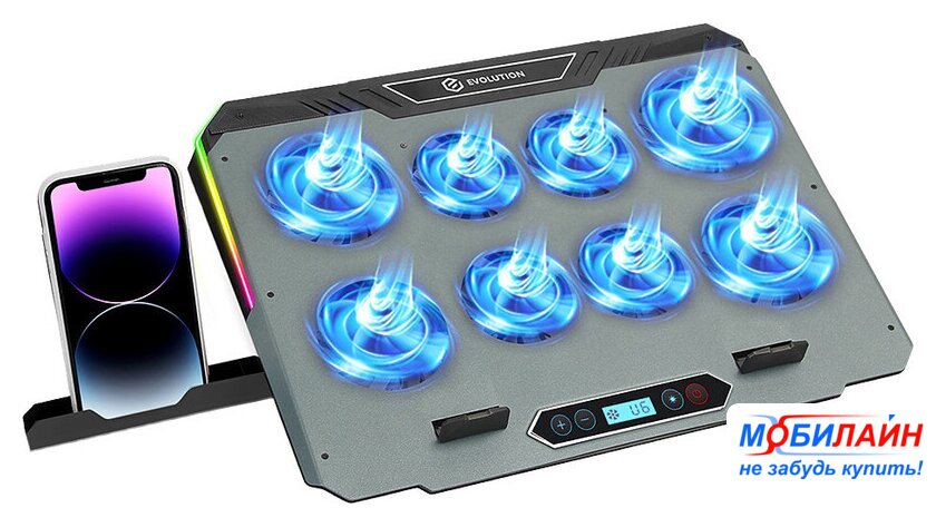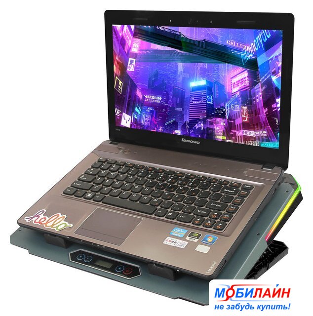 для ноутбука до 19", активное охлаждение, шум 30 дБ, регулируемый наклон, подсветка, 2xUSB