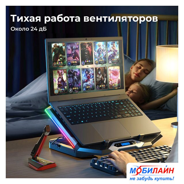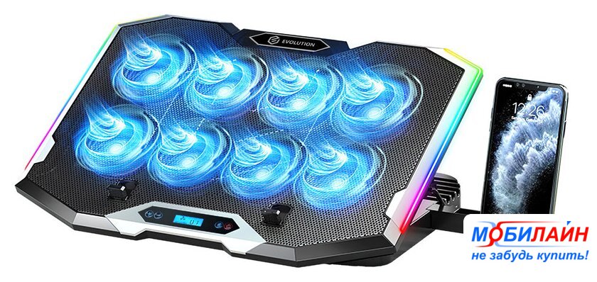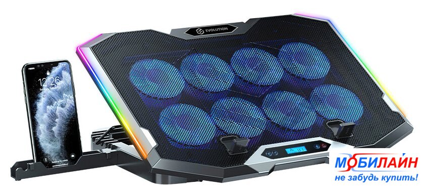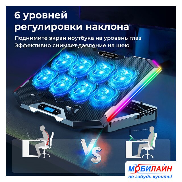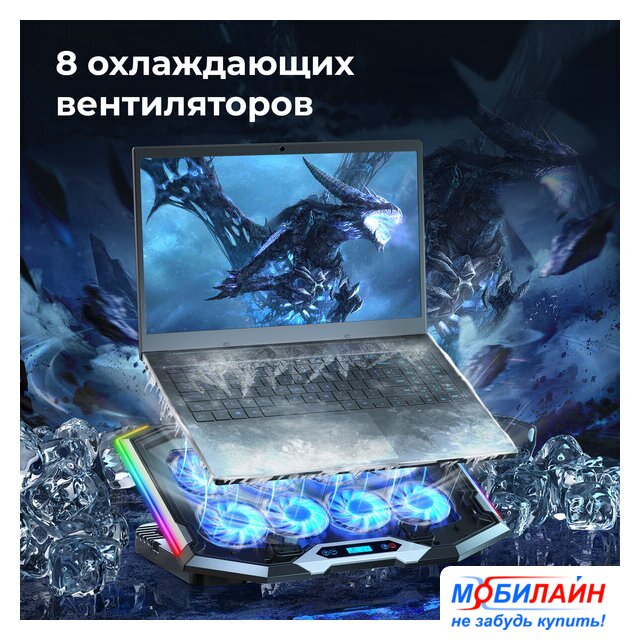 для ноутбука до 17.3", активное охлаждение, шум 26 дБ, регулируемый наклон, подсветка, 1xUSB