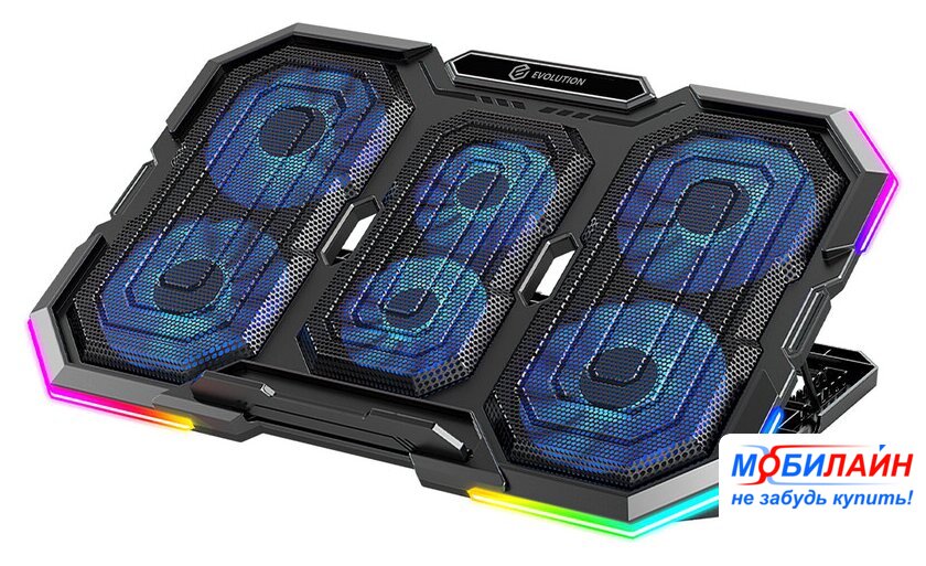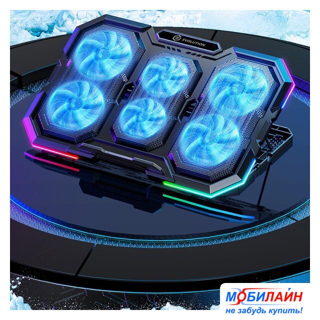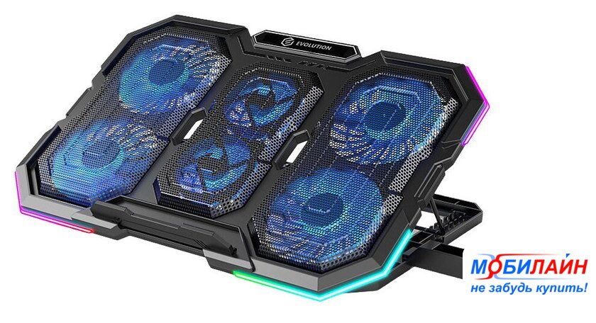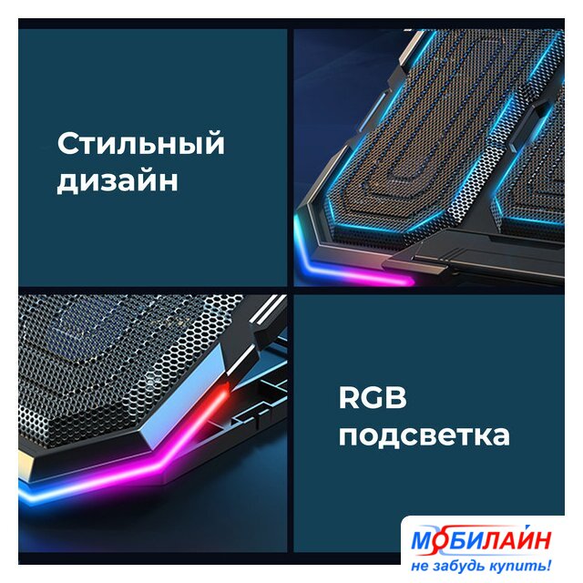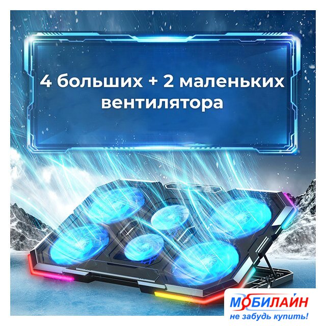 для ноутбука/для смартфона до 15.6", активное охлаждение, шум 25.5 дБ, регулируемый наклон, подсветка, 1xUSB