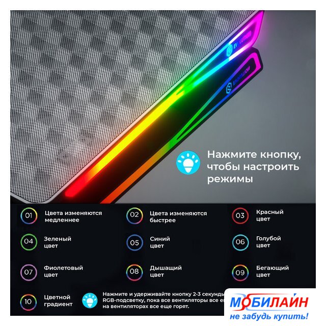Особенности | встроенный дисплей6 уровней скорости вентилятороввоздушный поток 110 CFM10 режимов контурной RGB-подсветкипротивоскользящие накладкиплетеный кабель |
