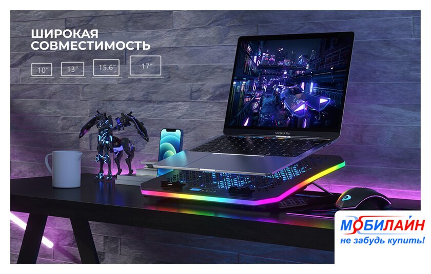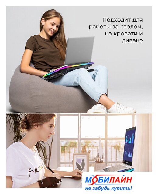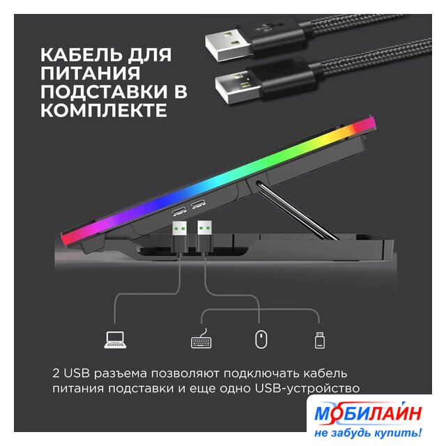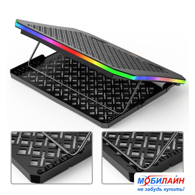 для ноутбука до 19", активное охлаждение, шум 24 дБ, регулируемый наклон, подсветка, 1xUSB