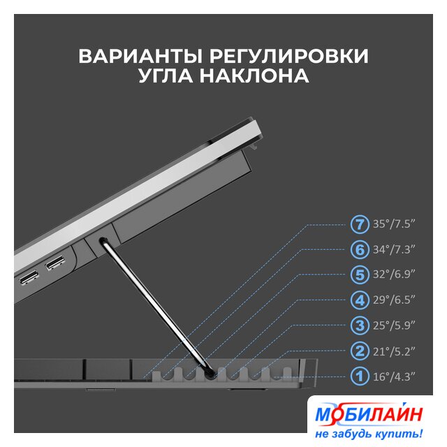 для ноутбука до 15.6", регулируемый наклон