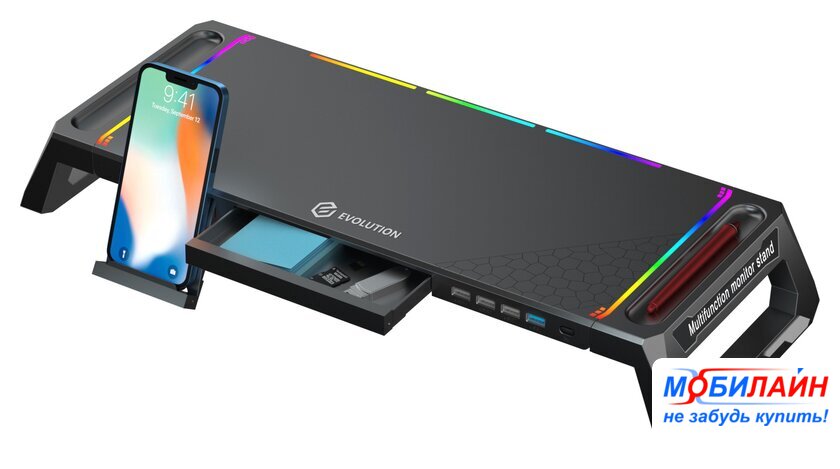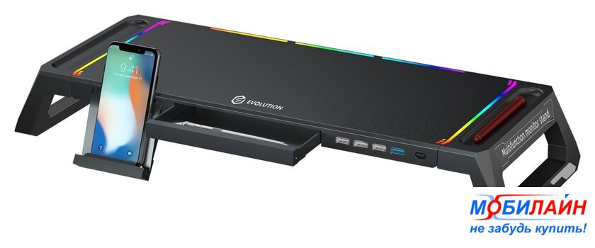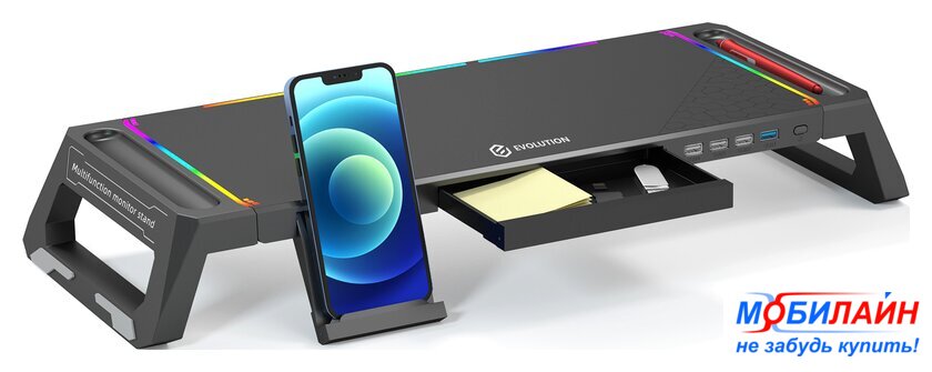 Особенности | - складная конструкция ножек (позволяет изменять габариты и высоту подставки)- скрытая подставка для смартфона- ящик для мелочей- два слота для ручек- максимальный вес монитора (при использовании со сложенными ножками) - 20 кг- максимальный вес монитора (в разложенном состоянии) - 50 кг |