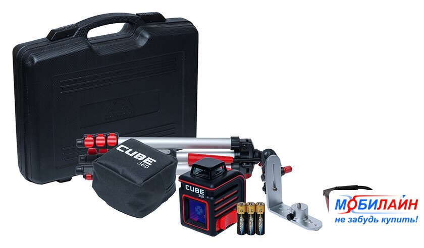 Комплект поставки | Лазерный уровеньКейсШтатив Универсальное крепление ADA Universal ClampЛазерные очкиБатареи |
