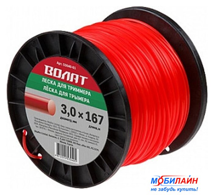применение: для газонной травы, тип сечения лески: квадрат, диаметр лески 3 мм, длина лески 152 м, цвет: красный