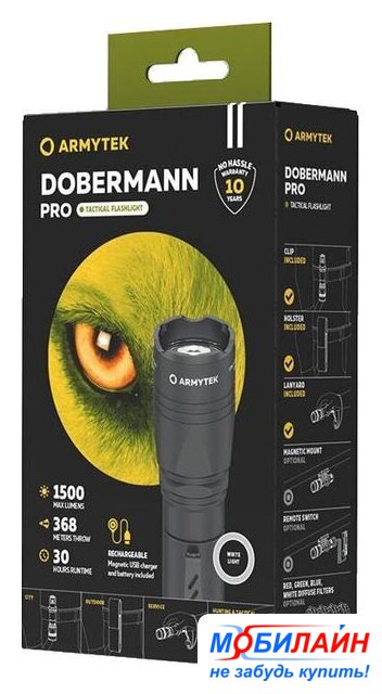 Комплект поставки | - фонарь;- аккумулятор 18650;- быстрая магнитная USB-зарядка;- стальная клипса;- ремешок на руку;- нейлоновый чехол;- силиконовый грип-упор;- два запасных уплотнительных кольца;- инструкция. |