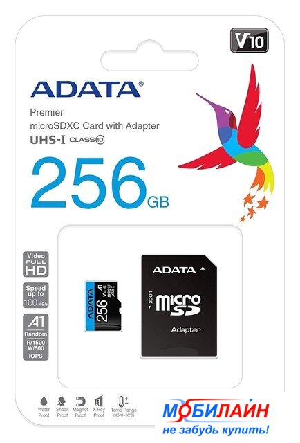 256 Гб, класс 10, UHS-I (класс U3), V30, A1, чтение: 100 МБ/с, адаптер
